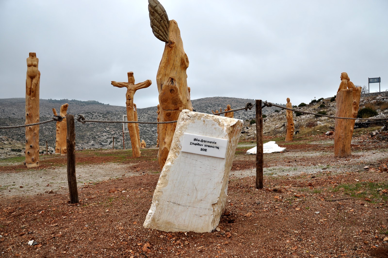 Ο Σπύρος Ντασιώτης που εργάζεται στο Δασαρχείο Πάρνηθας, έχει τοποθετήσει εκτός από τα είκοσι ξυλόγλυτα και μια μαρμάρινη πλάκα (Φωτ.Νο 3) με ένα στίχο του Γιάννη Ρίτσου από την Εαρινή Συμφωνία που γράφει:
